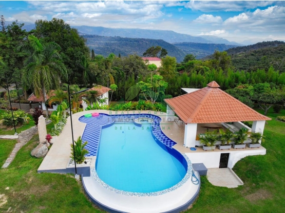 Área de lote: 1 hectárea (10.000 m2), con casa principal y casa de administrador, kiosko, zona de BBQ, piscina para adultos y niños, parqueadero para 10 carros, lago, capilla, senderos con iluminación solar, sistema de seguridad por cámaras, internet satelital starlink, excelente reserva de agua, variedad de arboles frutales, servicio publico de agua y luz.